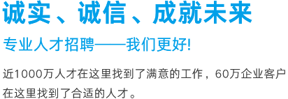 英才網(wǎng)聯(lián)勵精圖治十余年,專注分行業(yè)專業(yè)人才招聘服務,深刻理解企業(yè)用人之道,幫助客戶選好人才用好人才,自成立之初始終堅持誠實、誠信的態(tài)度服務廣大客戶,拒絕虛假招聘信息,堅持優(yōu)質(zhì)服務品質(zhì),已經(jīng)成為“建筑、化工、醫(yī)藥醫(yī)療、金融”等行業(yè)專業(yè)人才招聘的首選網(wǎng)站。